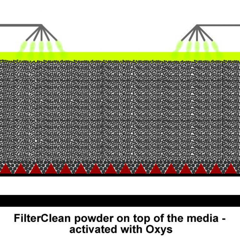 Filter media gradually becomes clogged and collects more deposits through its operational life which are hardly to remove by only backwashing. This effect can produce a water re-contamination and/or a filter media deterioration which drastically increases the final water quality as well as operational and maintenance costs.