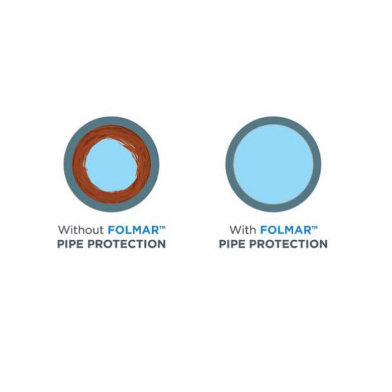 Folmar Pipe Protection is non-toxic, biologically inert, mineral-based, and replaces phosphates. It can be added to the water anywhere in the system with full downstream effect.